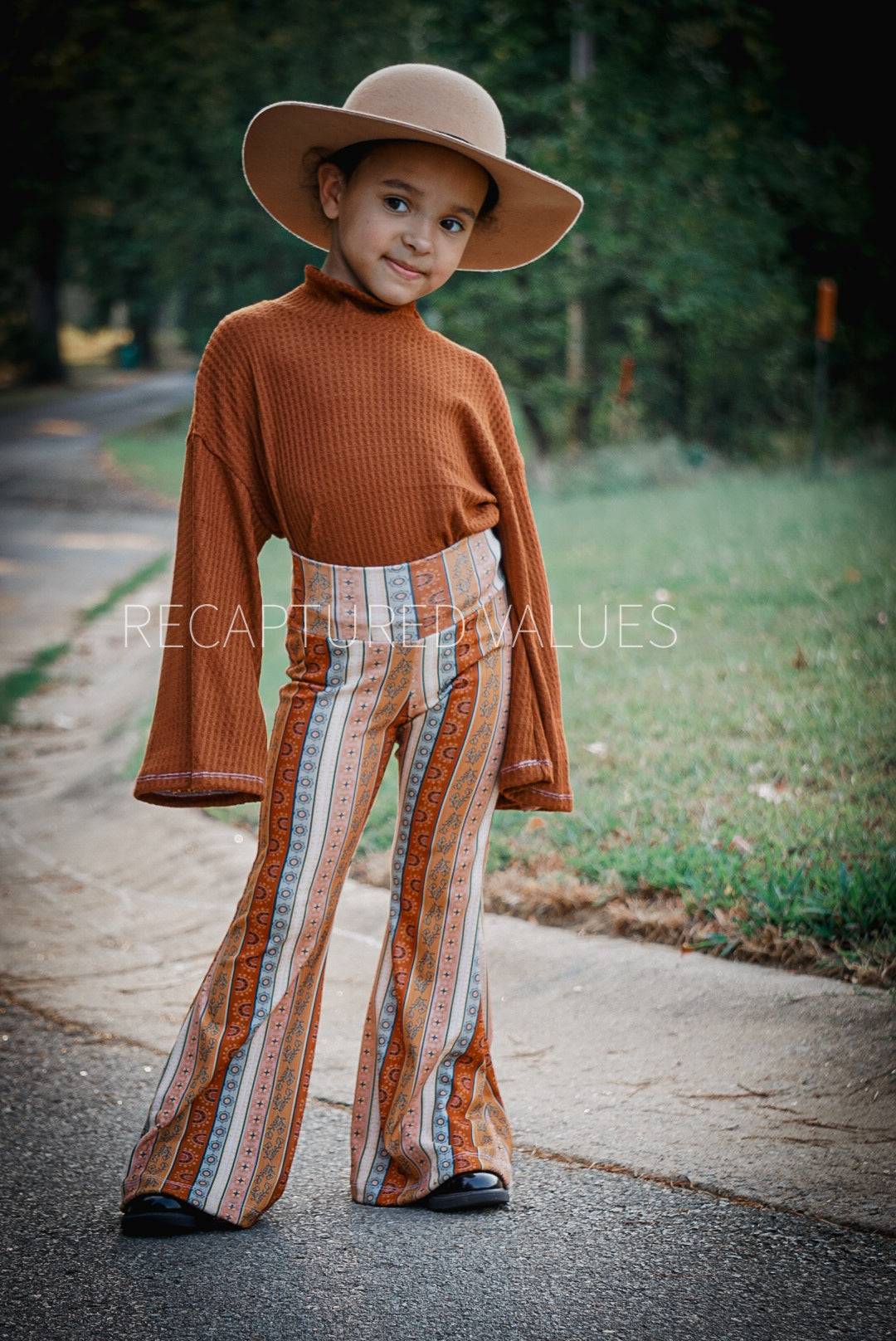 Cozy Boho Groovy Toddler Kids Sized Outfit Hippie Flared Bell Bottoms and Rust Mock Neck Sweater 2 Piece Outfit