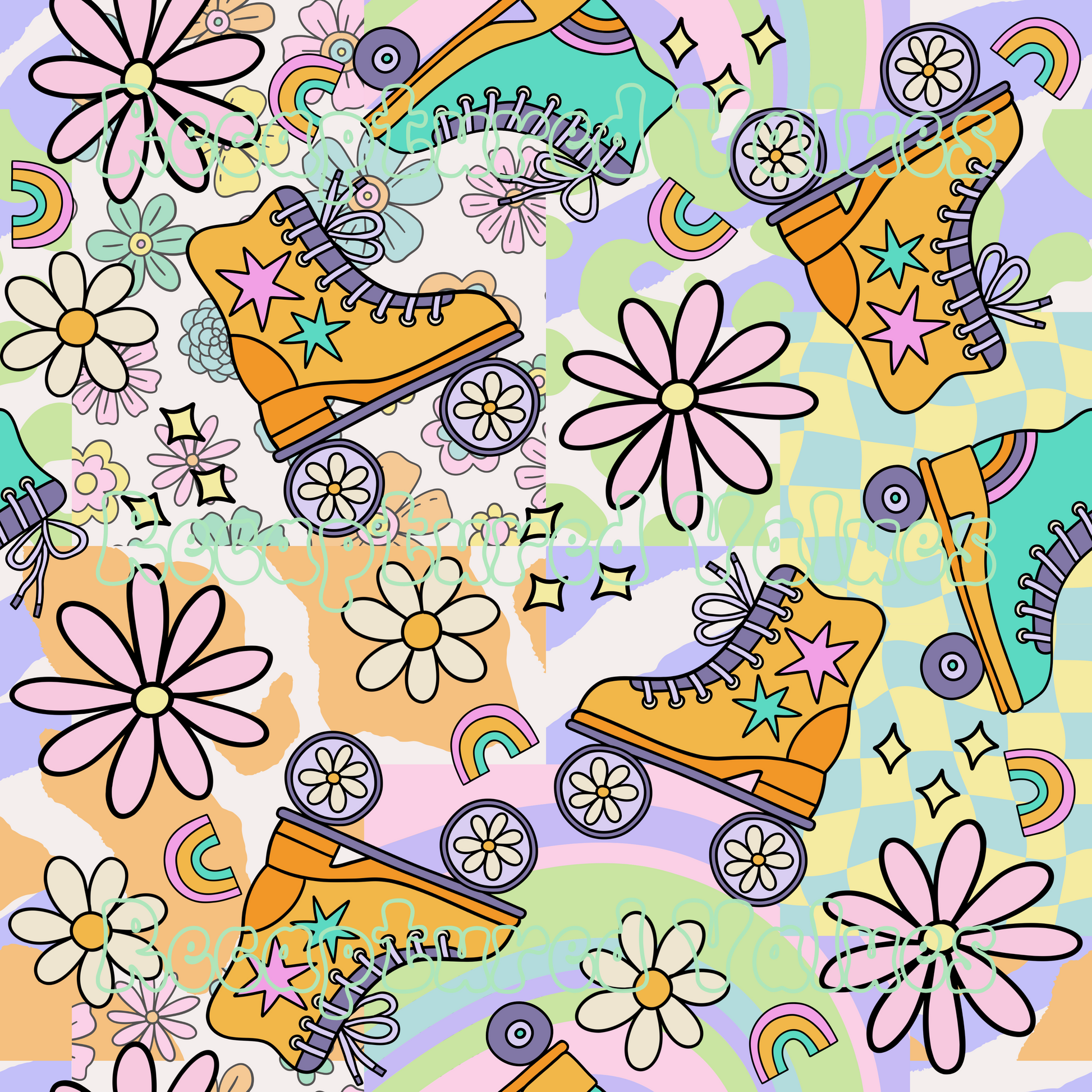 Groovy Roller Skates Patchwork PNG Seamless Pattern Design // Recaptured Values