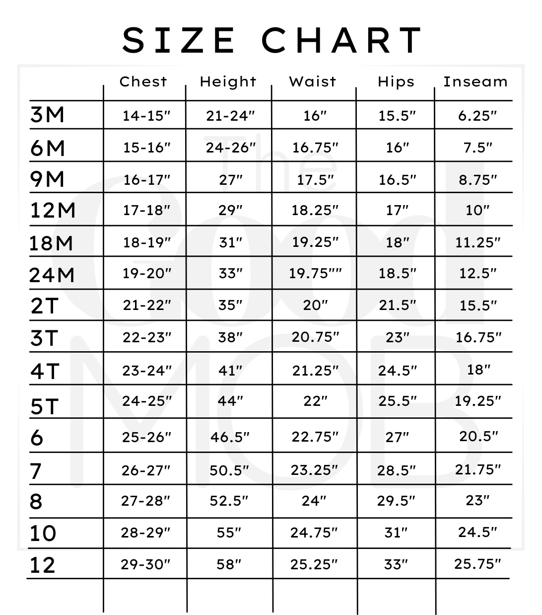 • Sizes available: 3M to 10/12Y — custom sizing available upon request