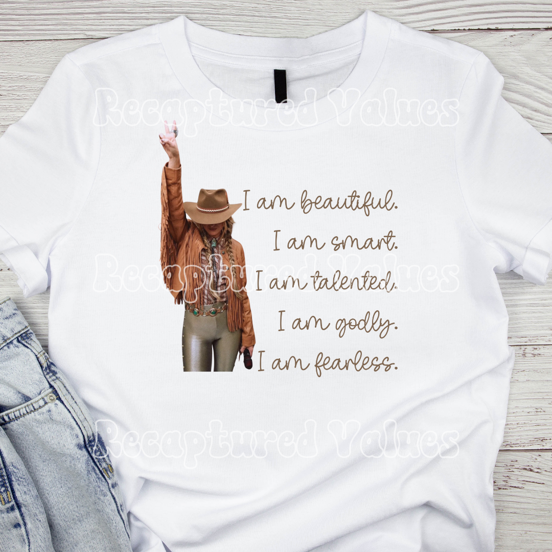 I am Beautiful, I am Smart, I am Talented, I am Godly, I am Fearless, Lainey Wilson PNG Design // Recaptured Values