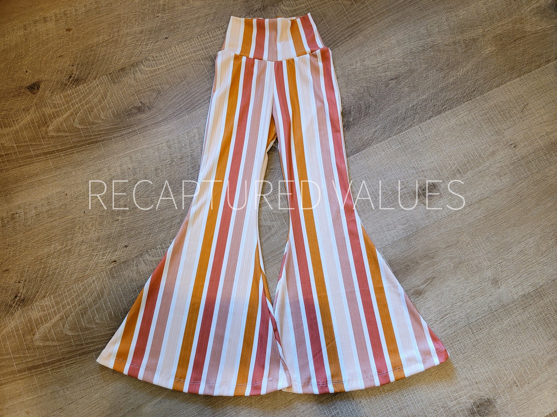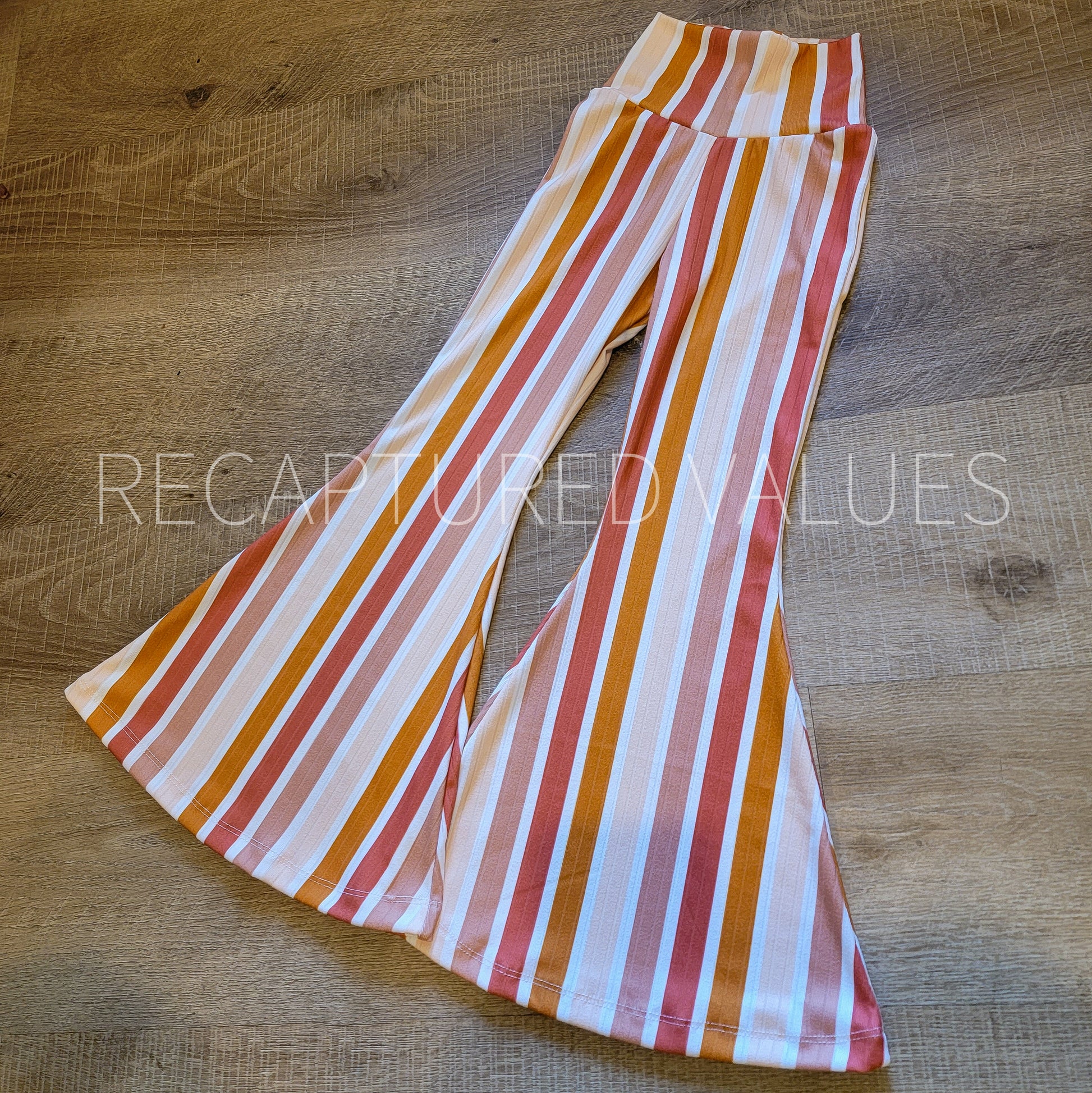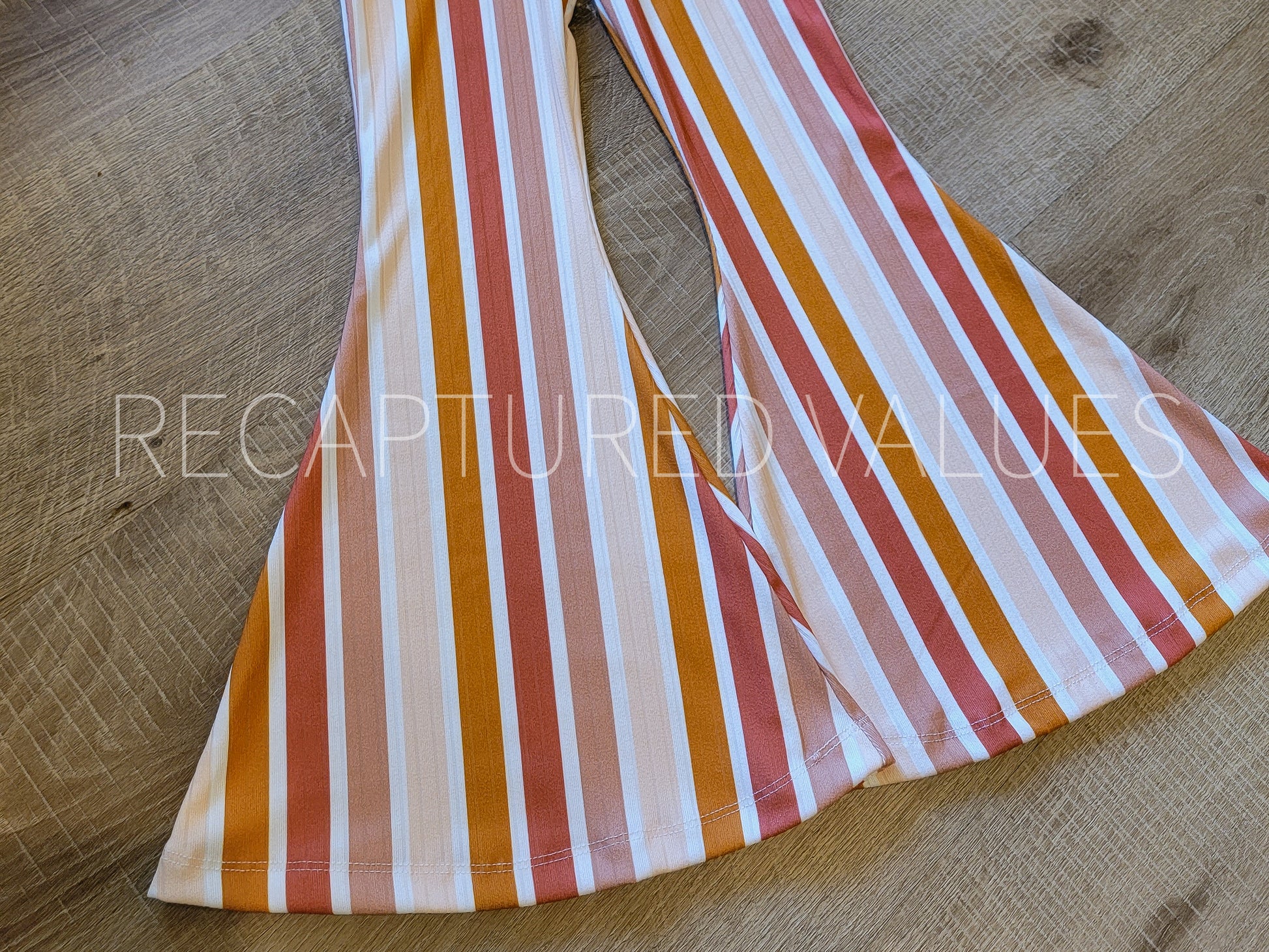 Marsala Sunset Groovy Retro Hippie Stripe Flared Bell Bottoms for Baby & Toddler Girls, Marsala, Nude, Cream Colors