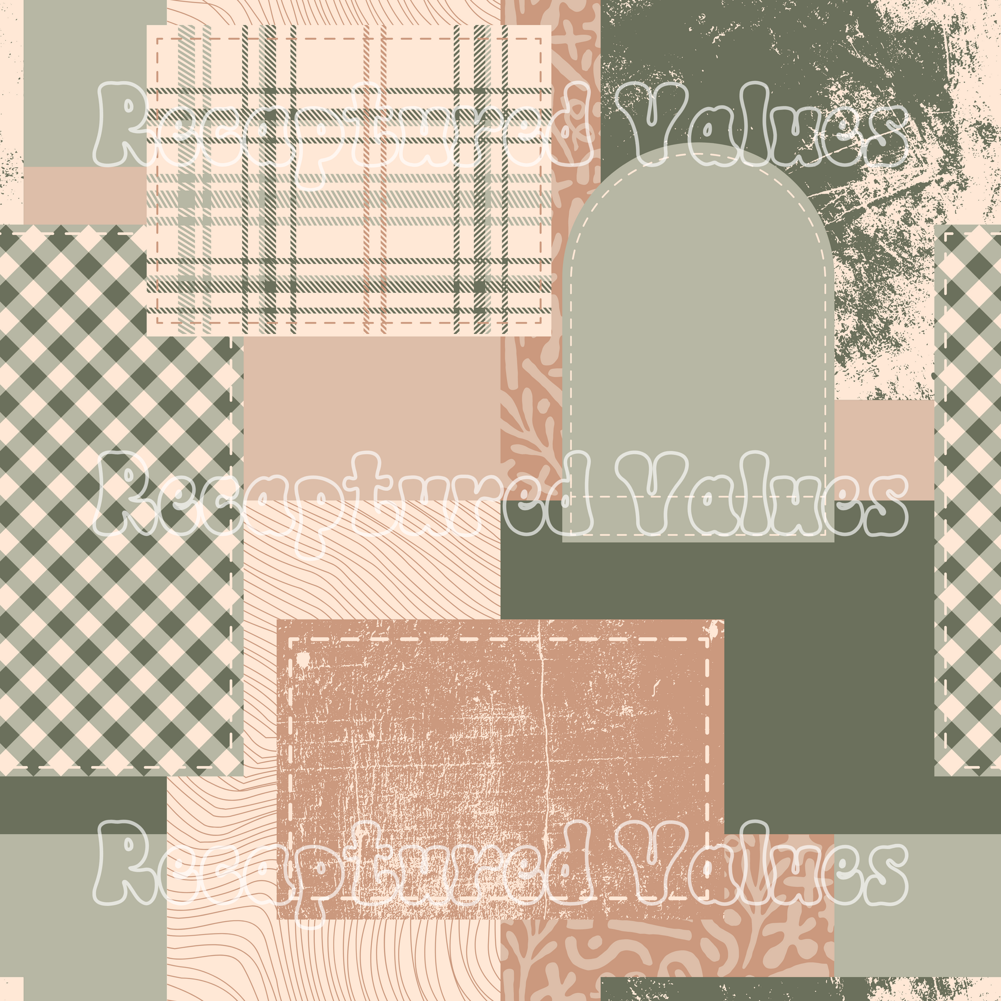 Sage & Taupe Patchwork PNG Seamless Pattern Design // Recaptured Values
