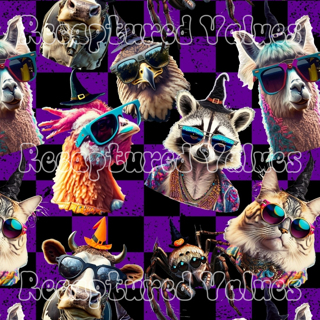 Witchy Party Animals Black and Purple Checkers PNG Seamless Pattern Design // Recaptured Values